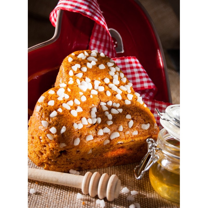 A partager ou à offrir, un pain d'épices riche en miel parsemé de perles de sucre.